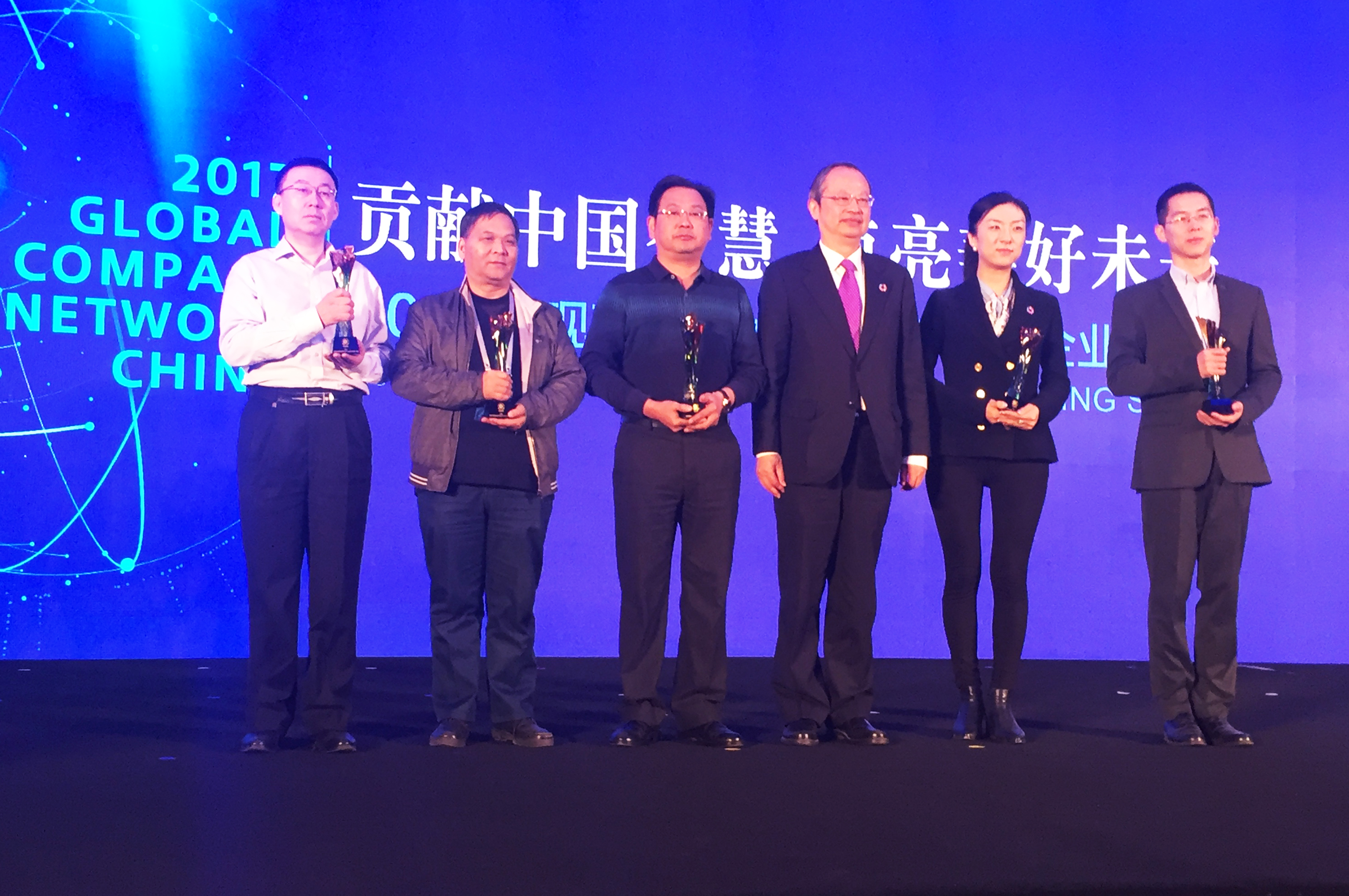 公司入選“實(shí)現(xiàn)可持續(xù)發(fā)展目標(biāo)中國企業(yè)最佳實(shí)踐”榜單,公司執(zhí)委、副總裁劉鳳山(左三)代表公司參會并上臺領(lǐng)獎。