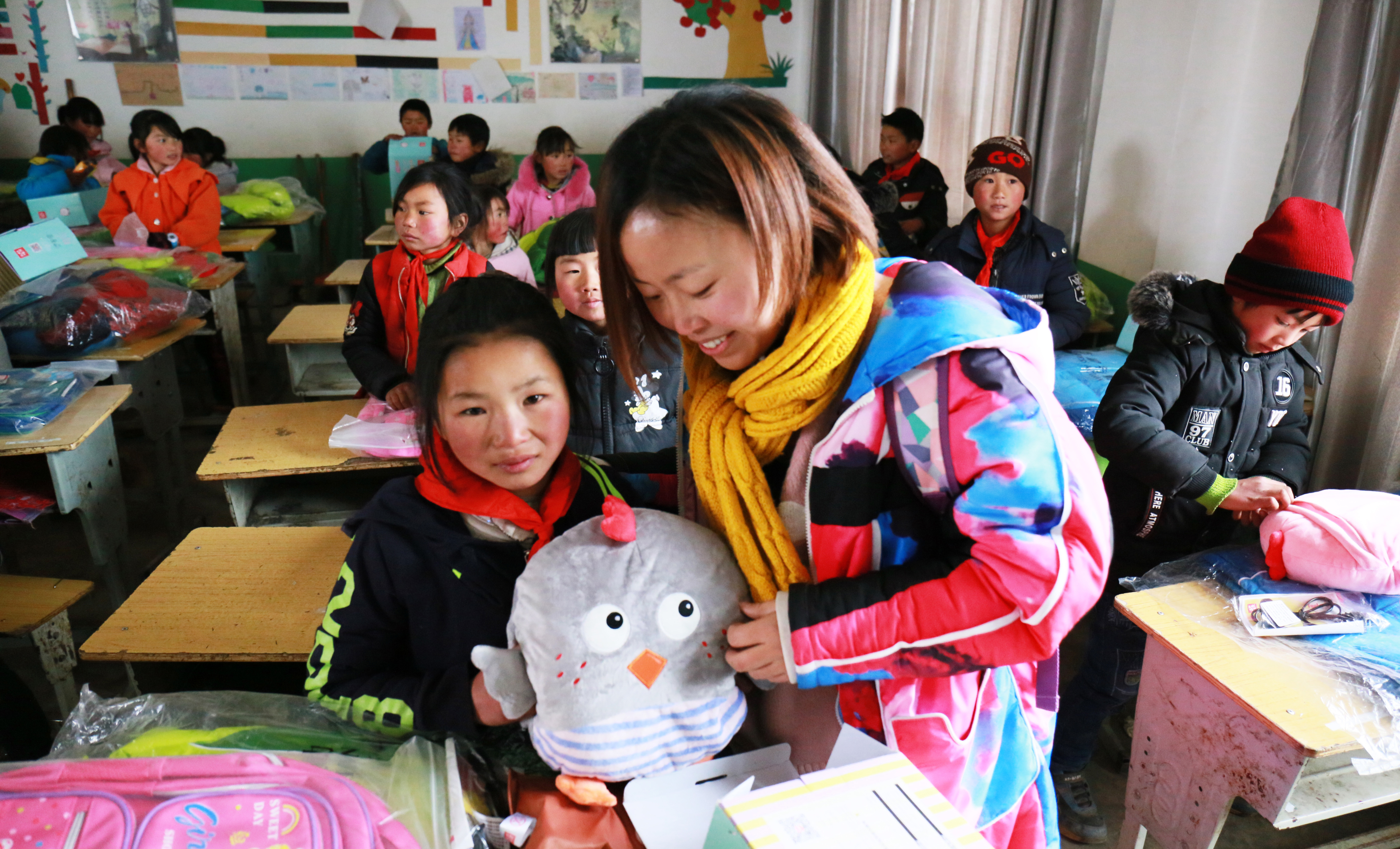照片在網(wǎng)絡(luò)傳開(kāi)的當(dāng)日,獲悉情況的華新昭通公司立即采購(gòu)4萬(wàn)余元物資,經(jīng)過(guò)一天的準(zhǔn)備后,組織28名志愿者在冰雪路上驅(qū)車兩個(gè)小時(shí),到達(dá)該校。志愿者們捐贈(zèng)了帽子、圍巾、書(shū)包、跳繩等保暖用品和學(xué)習(xí)用品150份,還為全校六個(gè)班級(jí)教室捐贈(zèng)了電用油汀(取暖器)六臺(tái),為學(xué)生的冬日奉上溫暖。志愿者們將帽子、圍巾給孩子們穿戴上,將書(shū)包等用品發(fā)放到他們手中,孩子們的臉上都洋溢著開(kāi)心溫暖的笑容。