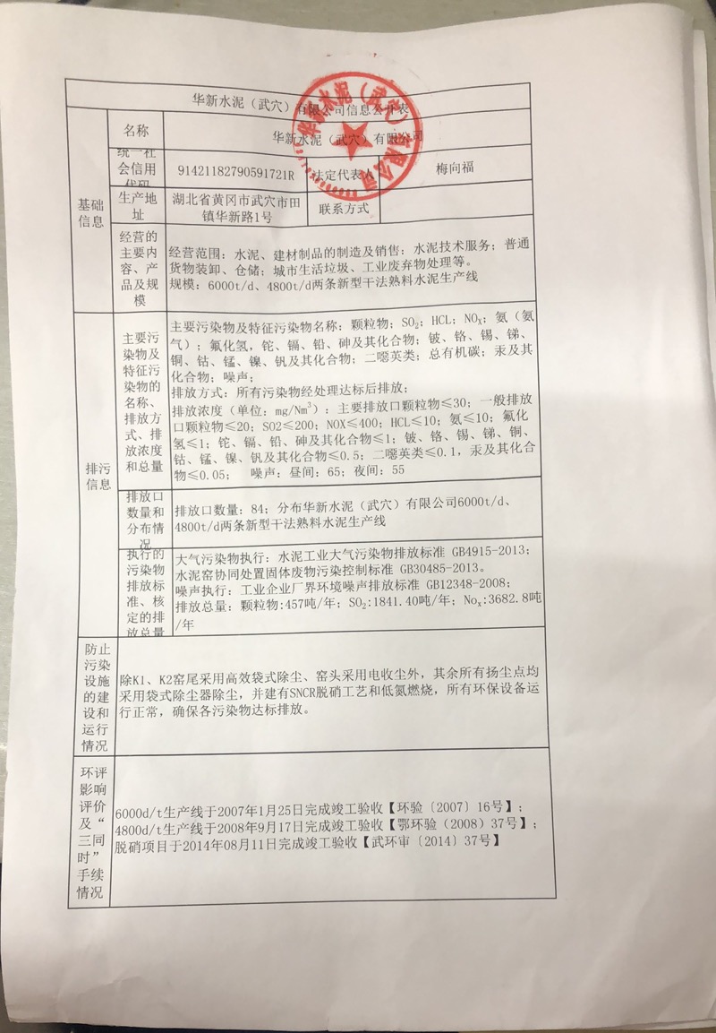 2、華新水泥(武穴)有限公司2021年第四季度監(jiān)測方案