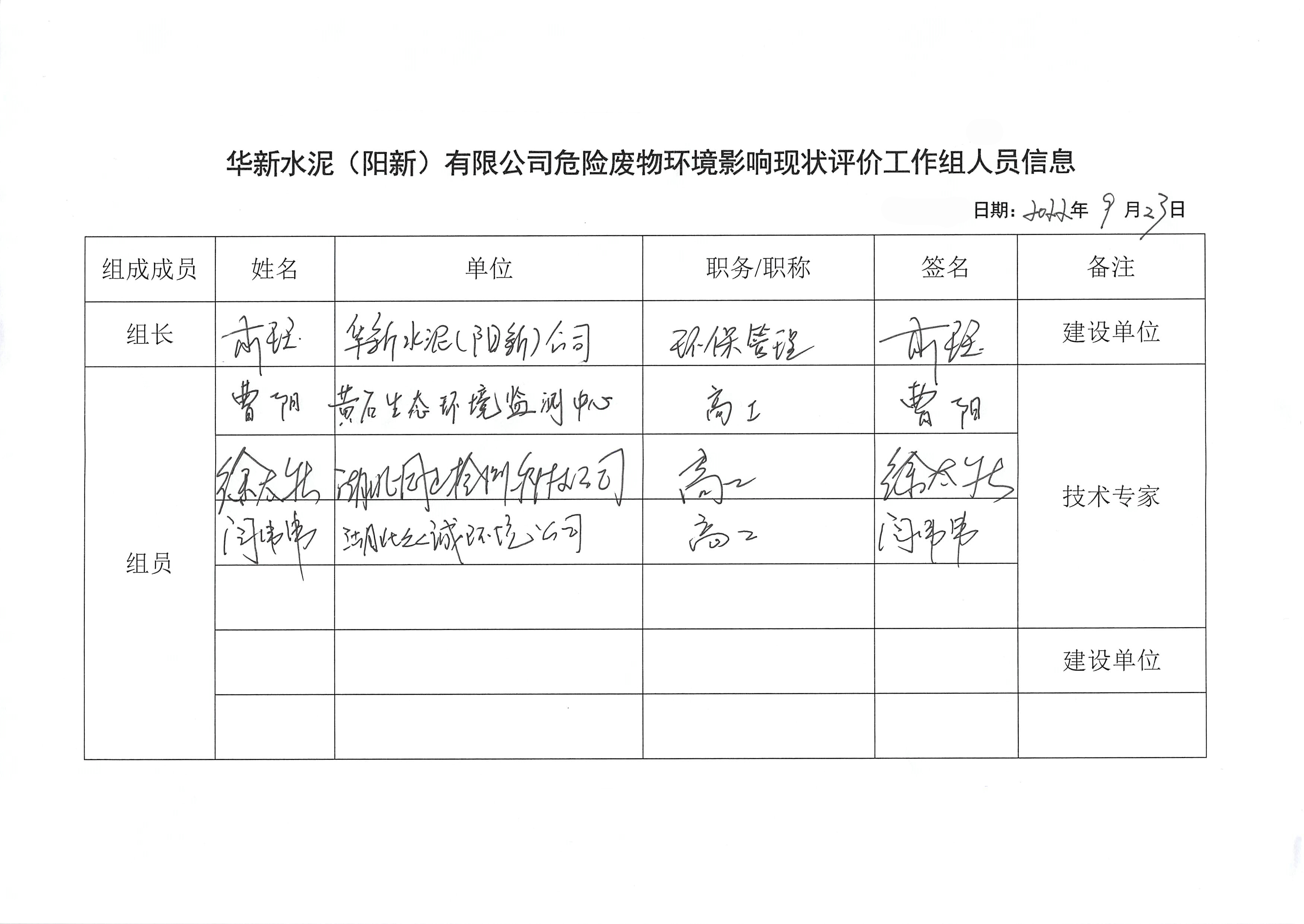 附件2:華新水泥(陽(yáng)新)有限公司危險(xiǎn)廢物環(huán)境影響現(xiàn)狀評(píng)價(jià)簽到表